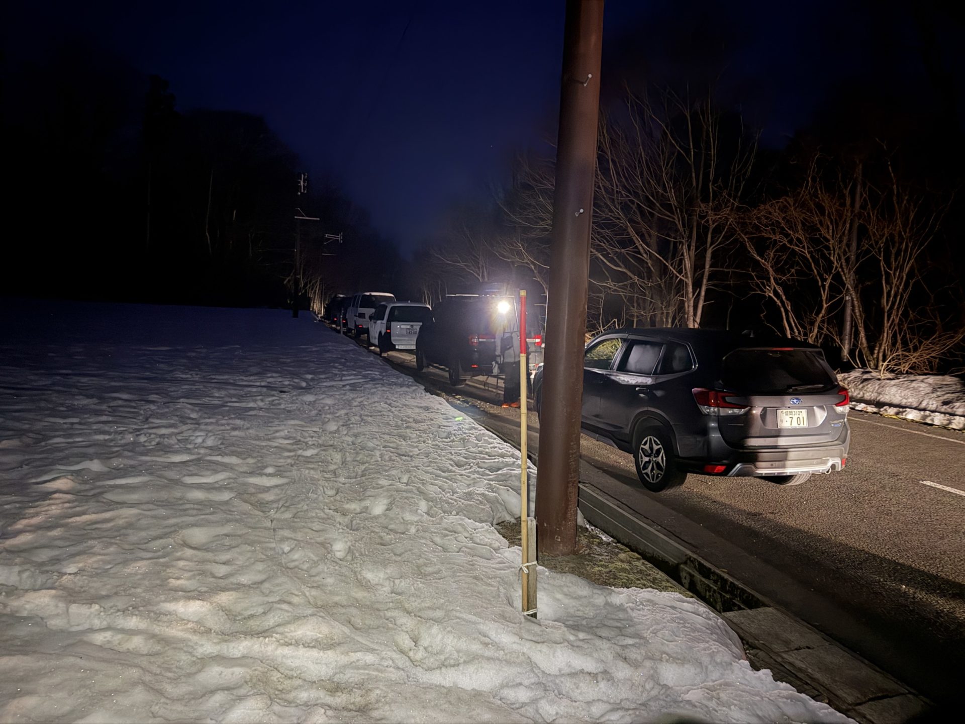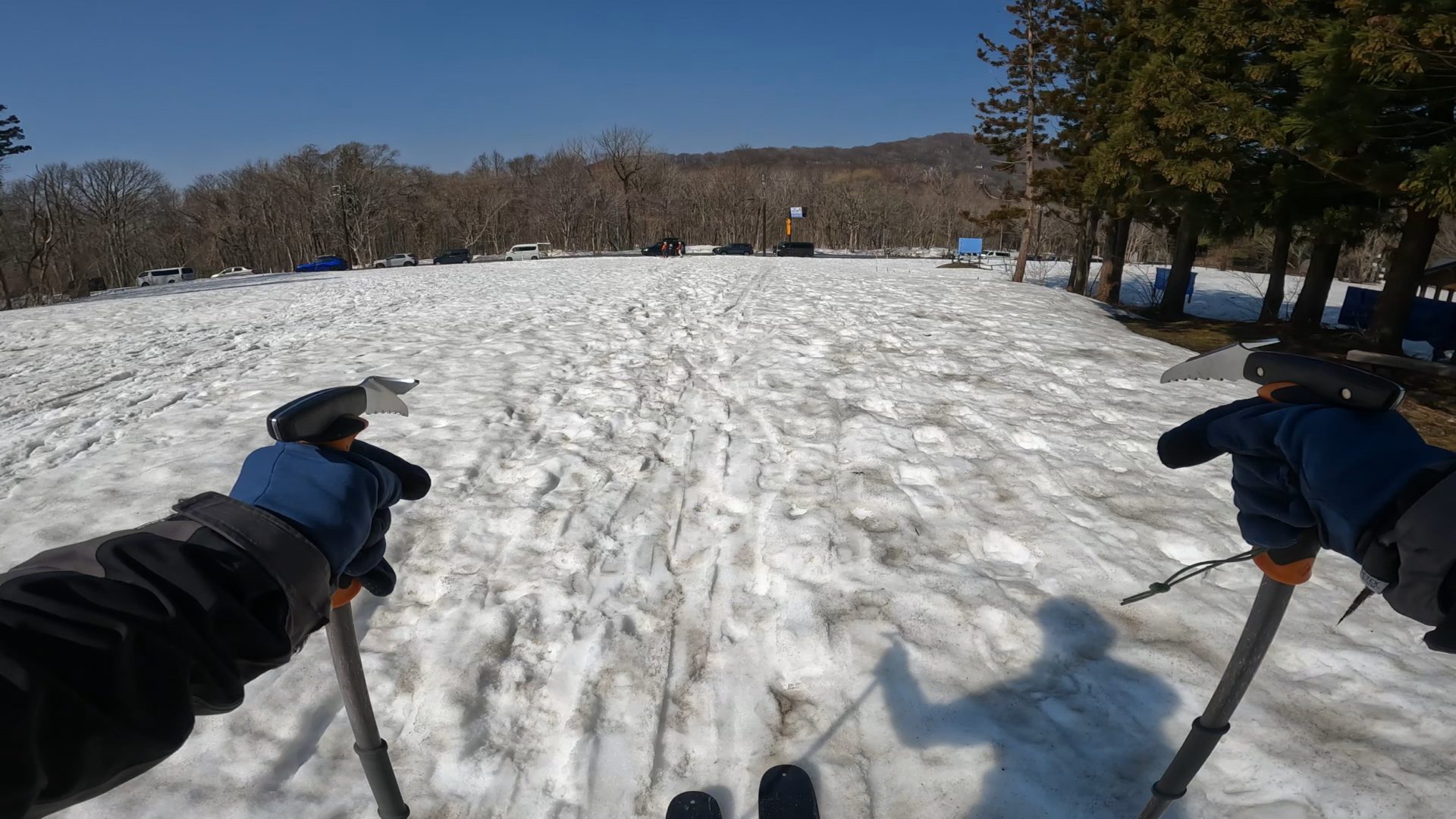 そしてさらに驚いたのは、車まで滑れることです。ボーダーも滑りきれます。10km登って10km滑る!